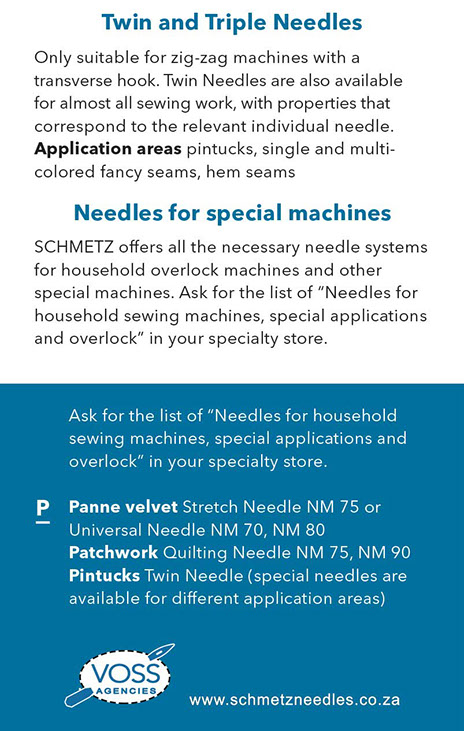 Currently a 3rd generation family business and authorised agent to distribute the Schmetz sewing machine needle in South Africa.