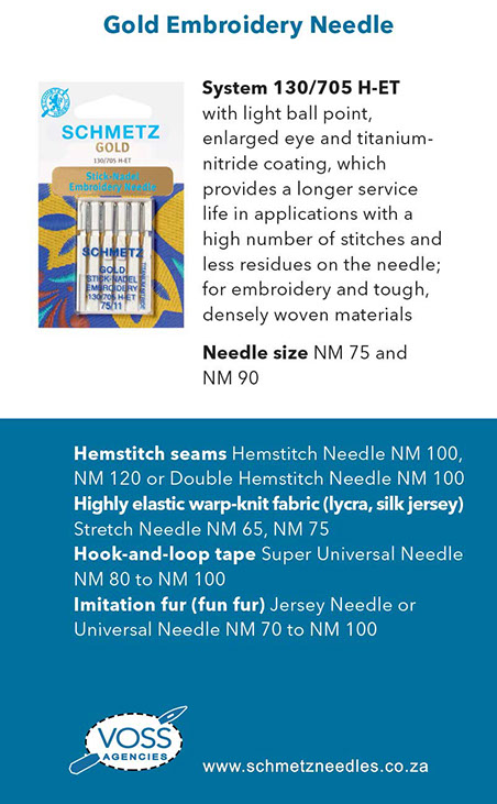 Currently a 3rd generation family business and authorised agent to distribute the Schmetz sewing machine needle in South Africa.